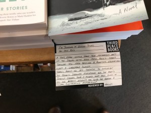 As we wended our way toward the registers at the front of the store, Maren pointed out the cards that annotated the books on the tables and shelves. The cards offered reviews by the staff, noted awards won by the book and author, and even let browsers know that a less expensive edition of the book in question was available on a different shelf in the store. I had seen cards similarly deployed in other stores, but never to such good effect. Walking through the store while looking at the books and reading the cards was like enjoying a stimulating conversation with friends or taking part in a silent book club discussion.