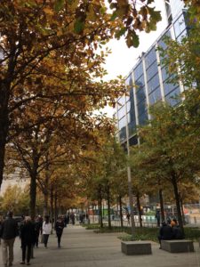 But the West Village is, comparatively, quiet. It was an early October afternoon. The sun shined, the blue sky above was soft and cloudless. As I walked, people were few and far between. I could hear my footsteps and birds in the trees. Colorful leaves blew across the cozy streets, drawing my eyes to the red brick buildings as I made my way to Bank Street.